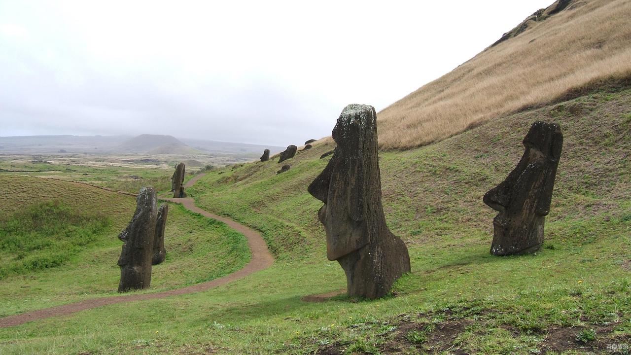 复活节岛最特别的景观则是造型奇特的莫埃”(Moai)。Vihu、Akahanga、 Tongariki、 Te Pito Kura等造型奇特的“莫埃”(Moai)石像群散落在复活节岛漫长海岸线上。Rano Raraku火山采石场内,由于资源枯竭而未完工被弃置的石像群又是岛上另一道幽深秘境。