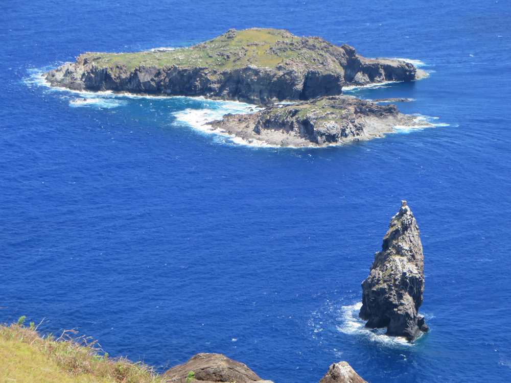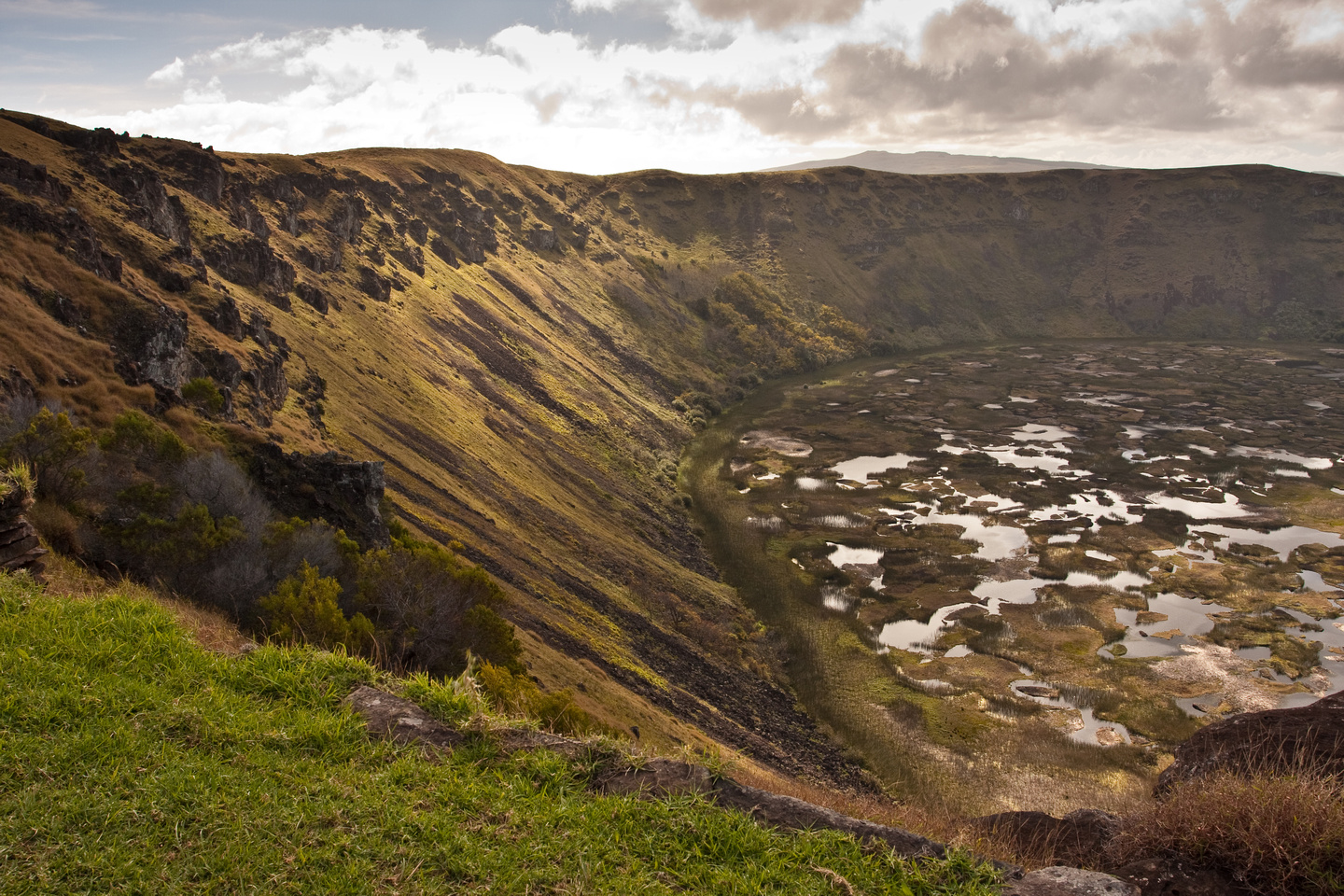 岛上的Rano Kau火山口非常壮观,像巨型池塘,也像偌大的碗口。置身这样独特的南半球海岛火山口中,空气清新透彻,微风拂过脸面,眼前则是翠绿的一片.....不禁感叹大自然总是恶作剧似的把“美丽”散落在人迹罕至的世界角落。火山口一侧的Orongo遗址,保留着大量描述Tangata Manu(鸟人)和Make Make(神)故事的鹅卵石岩画,可以一窥早期岛民的文明和智慧。