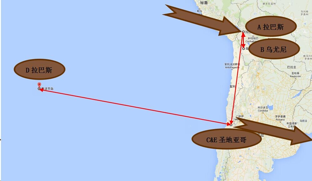拉巴斯—乌尤尼—拉巴斯—圣地亚哥—复活节岛—圣地亚哥
