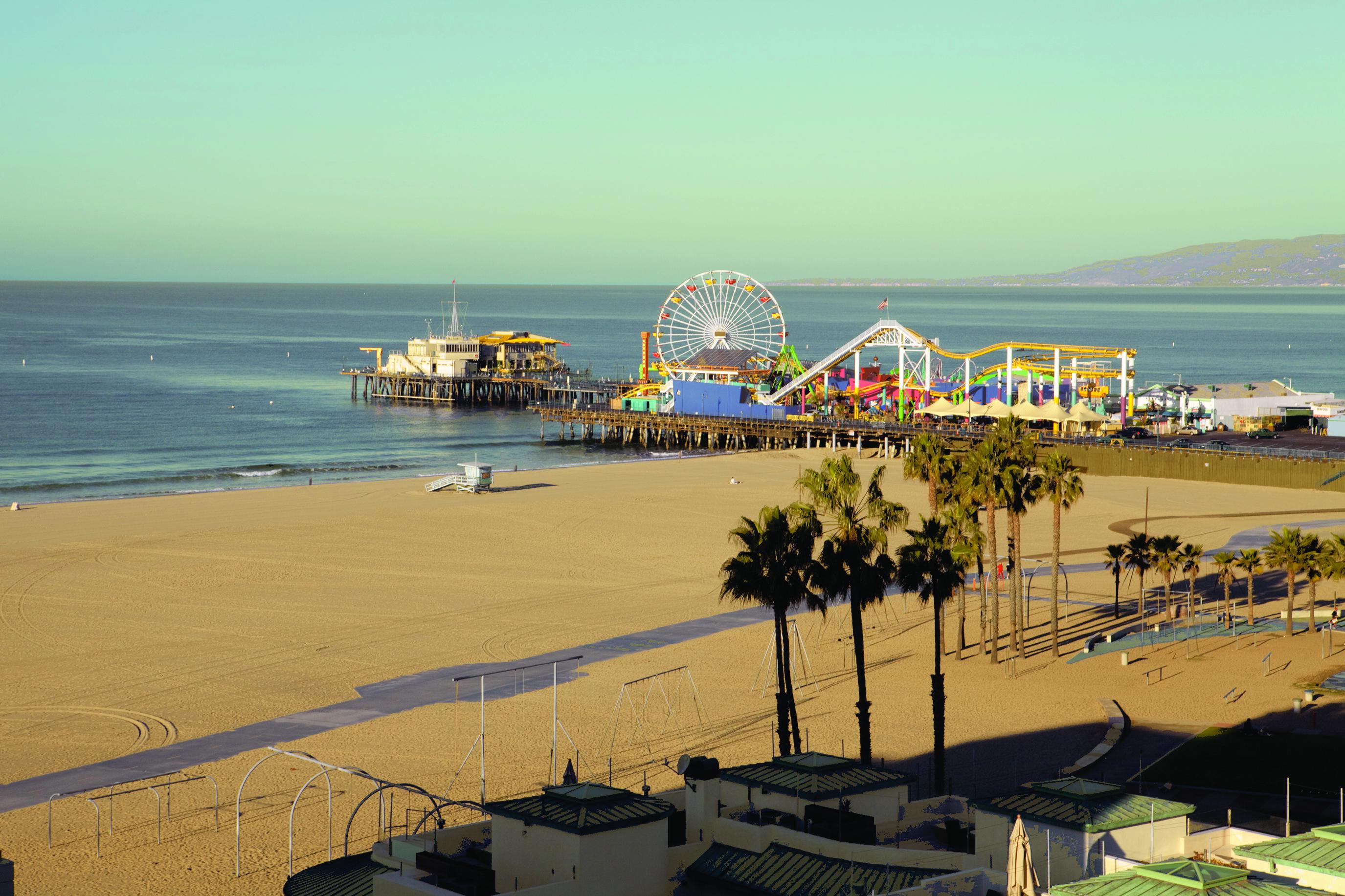 乘航班前往“天使之城”——洛杉矶,前往圣塔莫妮卡海滩,享受棕榈婆娑阳光明媚的加州节拍,漫步西海岸最老的突堤码头,逛逛第三街步行道的精品小店。