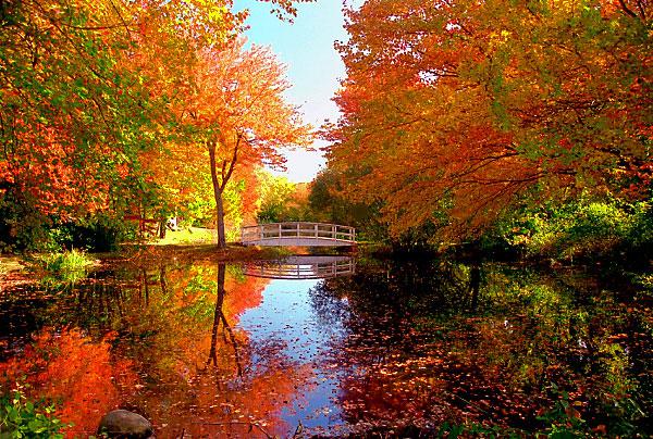 小镇的路边,排列着一个接一个的小作坊和小商店,聚集了从玻璃吹制到芥末栽培的能工巧匠,橱窗里展示着精巧的蕾丝缎带、古老的中国瓷器、当地的手工皮包和水杯底座等等。在这里,枫树生长在这城市的每个角落,长椅旁、墙角边、运河岸,人们什么都不用做,把车停在街角,买一杯温暖的咖啡,捧一本小说,伴几缕秋日阳光,享受一阵温柔的轻风,一边嗅着风里夹杂的枫叶香,一边伸手去接随风飘落的红叶,浪漫和幸福的感觉会就此溢满心间。