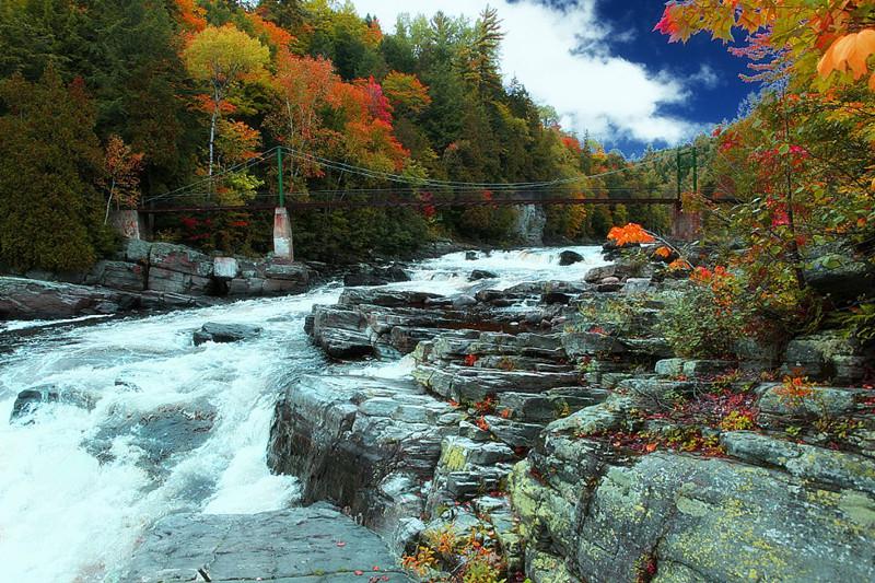 圣安妮峡谷,这里的枫叶因生长在谷底、山腰和山巅不同地方,因为气温不同,其变红的时间不尽相同,这也使得整个山谷的红枫在同一时期会呈现出丰富绚烂的层次感,找到三座高低错落、横空而架的吊桥:Mestachibo悬索桥,McNicoll吊桥和劳伦桥,更亲近地观赏圣安妮峡谷和枫叶之美。