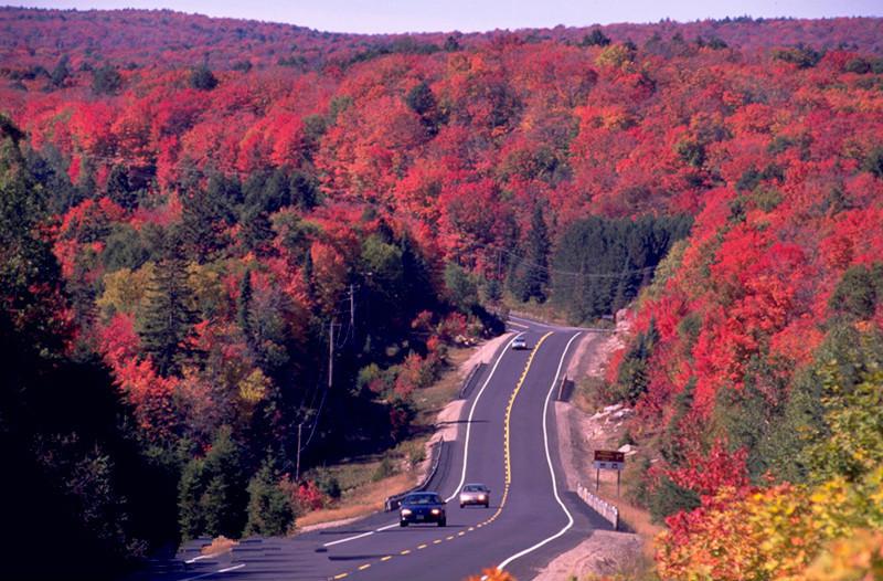 加拿大秋天红艳的枫叶,如梦幻般的树林,阳光下厚厚红叶铺出来的“地毯”,再现实的人都会被勾起浪漫情怀,秋天实在是加拿大一年中最唯美的季节。最美的“枫景”多集中在东岸,9月中旬进入最佳季节。除了枫树,还夹杂着槭树、桦树,槭树转红的时间较晚,枫红时节叶正绿,加上桦树的紫红,增添几许浪漫。
