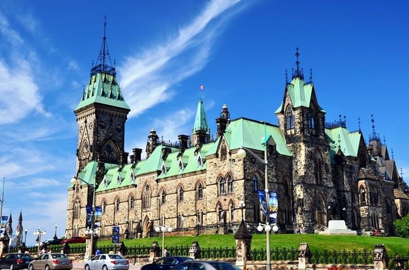 俯瞰渥太华河的一系列铜顶石砌哥德式建筑物,便是国会山庄,前面著名的钟楼上飘扬着加拿大国旗。在国会大厦前可以观看到皇家禁卫军的换岗操练仪式。里多运河,它最为人知的美誉当属“世界最长的滑冰场”,但联合国教科文组织对它的评语是,“发起控制北美大陆战争的见证”,颇有深意。