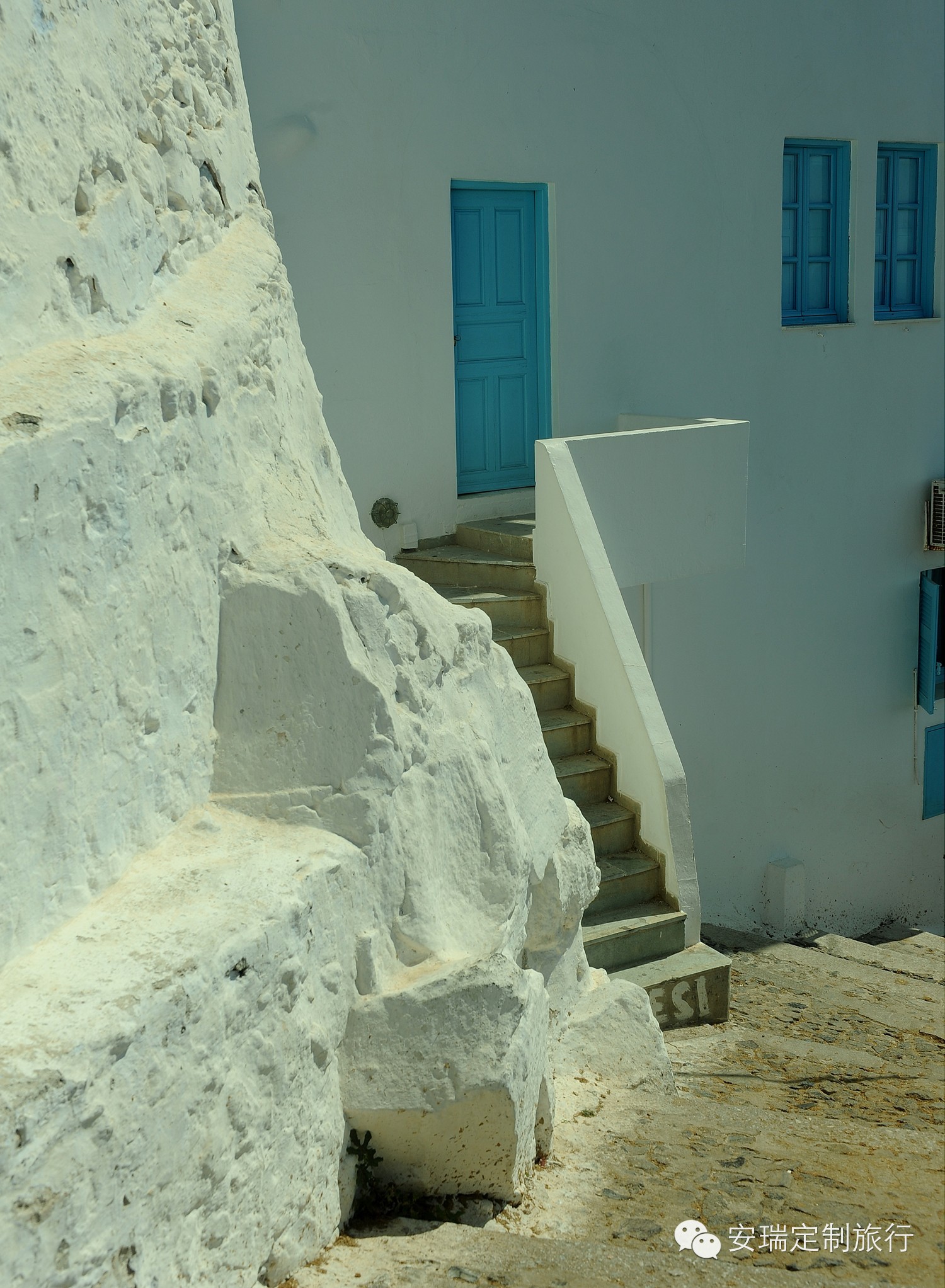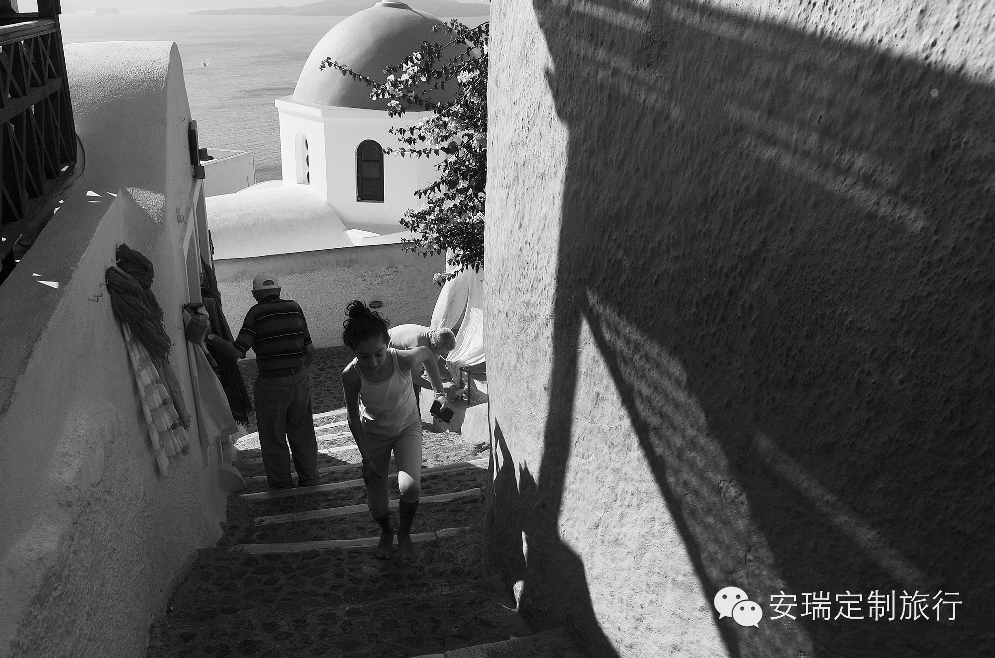 在圣托里尼,frank喜欢拍各式小路。路是神秘的象征,总有无限的延伸感。圣托里尼那些楼梯、门窗、台阶、路径,那些能指引人们去往有趣地方的精致角落,静静地躺在爱琴海边,也成了frank的玩味空间。