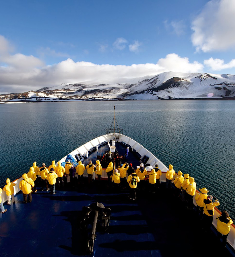 智利的一道道峡湾深入高耸的山峰和崩解入海的冰川之间,我们将以高山和冰川为背景展开登陆。