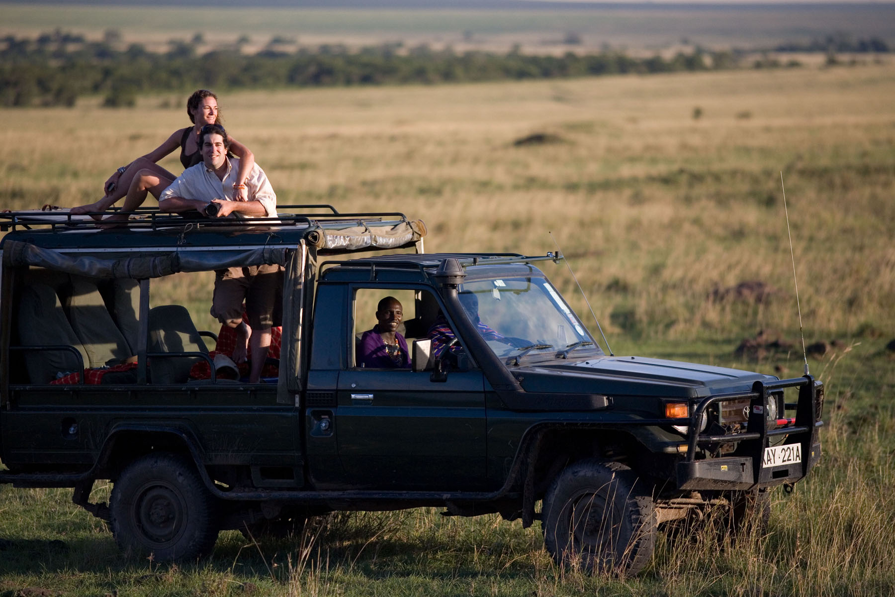 早餐后,乘车前往马赛马拉自然保护区。抵达后游览世界上最好的野生动物保护区之一★马赛马拉国家野生动物保护区,这里是动物最集中的栖息地。多彩的原野上,狮子、豹、大象、长颈鹿、斑马等野生动物生生不息。可以感受到独特的原始文化,以及草原上如仙境般美妙的日出、日落。晚餐后入住酒店休息。