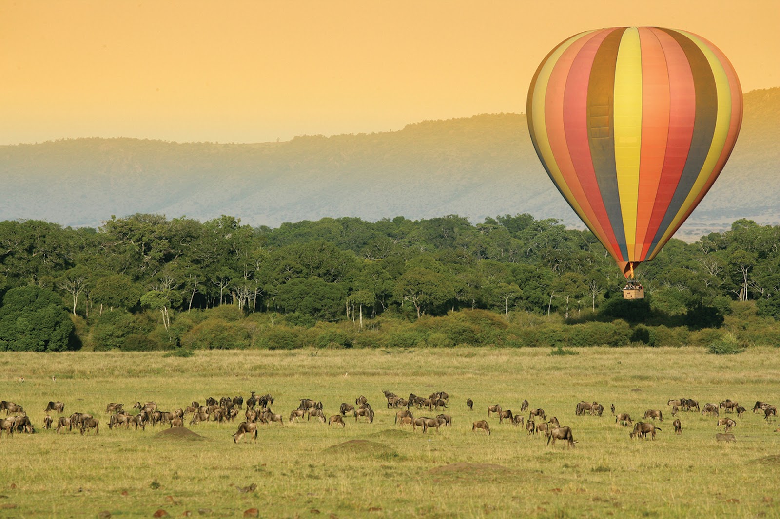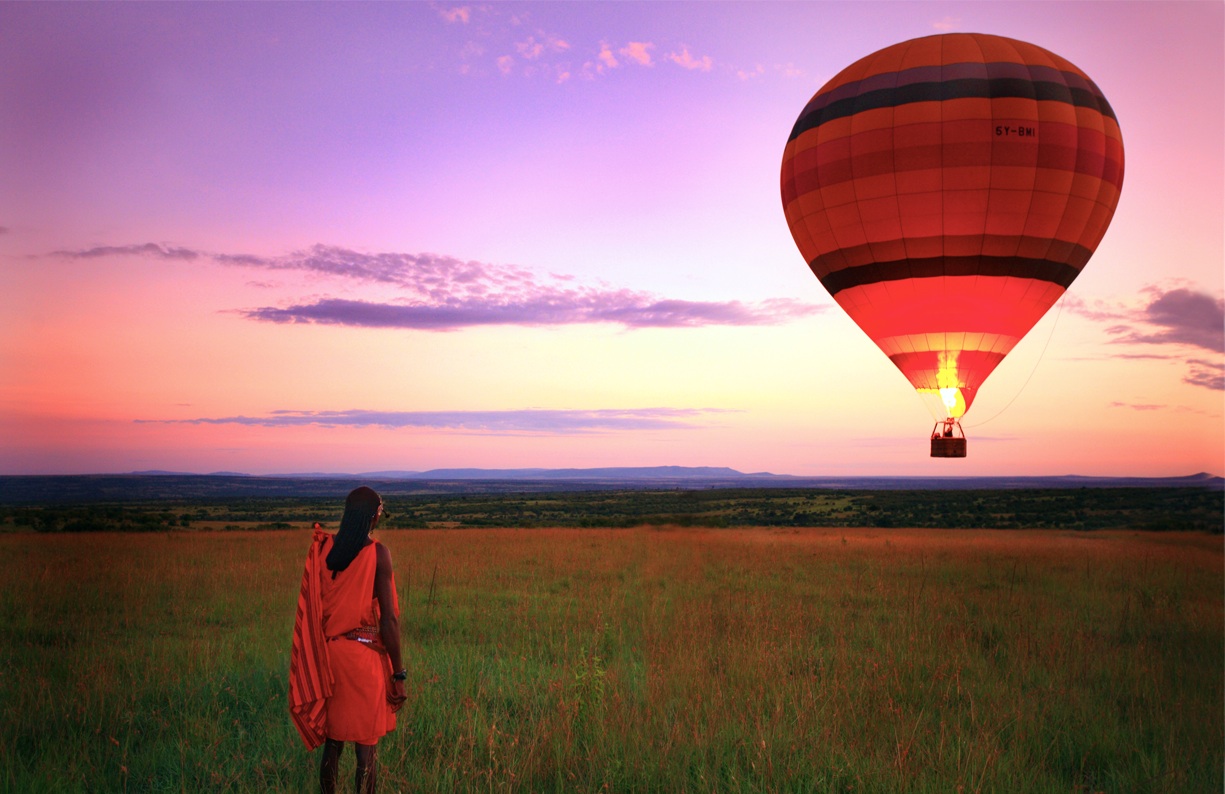 马赛马拉动物保护区是食草动物们大迁徙的归宿。斑马成群,羚羊机警,非洲野牛狂野,角度渡河惊险、悲壮,而雄狮、猎豹总在悠闲漫步伺机出动,这里无时无刻不上演着追逐、撕咬、吞噬的残酷生存斗争。坐在热气球上,鸟瞰非洲大陆上最惊心动魄的动物大迁徙:东非广阔的大草原上,低矮的丘陵绵延起伏,巨大的合欢树和波巴步树星星点点散落其间,马拉河的支流织云密布、纵横穿梭前行,编织成一幅幅美轮美奂的自由、奔放、原始、野性的壮美图画。