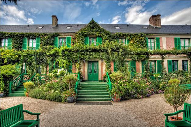 在莫奈花园,可以看到淡粉色的莫奈故居、睡莲池塘、日本桥。故居中的莫奈作品皆为复制品,而原作被放在巴黎等地的一流博物馆。其中还有莫奈生前收藏的日本《浮世绘》版画可供观赏。在莫奈花园里,莫奈创作了大量以花园为题材的作品,梦幻的《睡莲》捕捉住了池塘瞬间的光影变幻,蓝色《日本桥》在池塘上树丛中若隐若现。