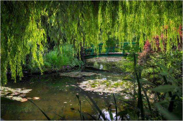 1895年,一名年轻的画家坐火车经过诺曼底的一个小镇,他被村庄的宁静安然所吸引,回巴黎后便搬来这个叫做维吉尼的小镇。在这里,他从世界各地引进奇花异草建造起一个完全不同于法国传统园林的花园世界,他甚至开挖了池塘,还引进了东方园林艺术的日本桥。这个画家便是莫奈,而这座至今存留下来的花园便是著名的莫奈花园。