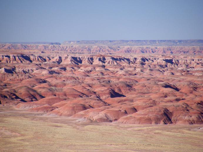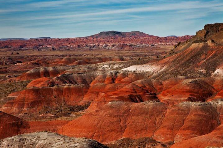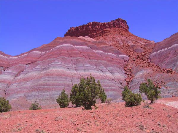 在大约两亿年前,这里曾一片沼泽泛滥的广阔平原。洪水退后留下的泥上、砾石和火山灰逐渐变成砂岩和页岩,它们因为吸收了各种各样的矿物质而染上了分外美丽迷人的颜色。