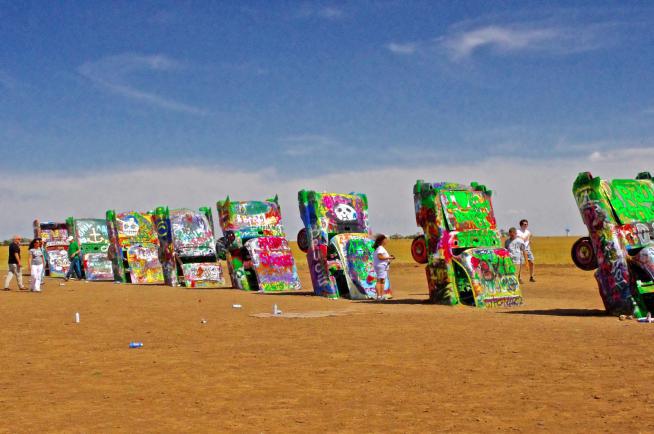 凯迪拉克农场包括一排半埋的被涂鸦的凯迪拉克汽车。这个农场最初是上世纪70年代,一个叫蚂蚁农场的艺术家团体为了表达对美国汽车的崇敬而建立的。如今和它们同龄的古董汽车都已成为收藏家的至宝。