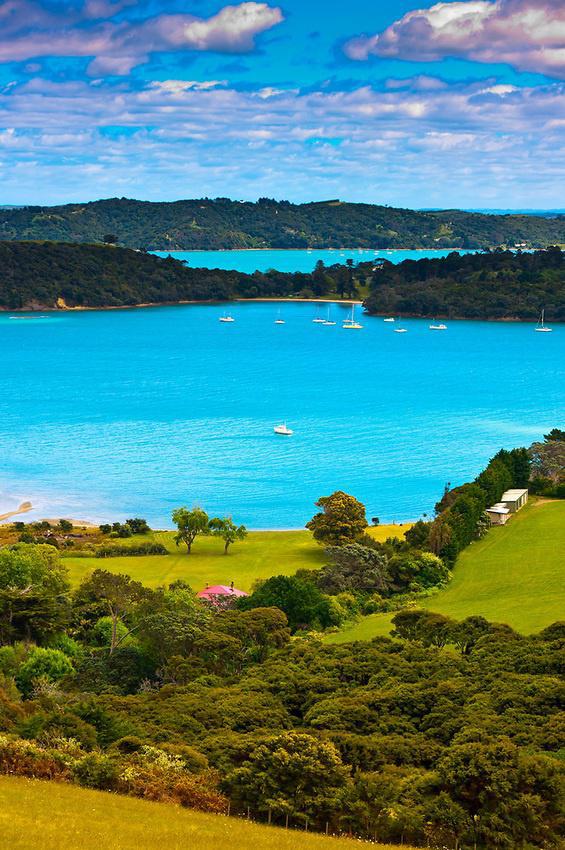 远远望去,奥克兰零星的民居隐没在墨绿的林地和葱绿的草原间,与不远处海湾里蔚蓝的海水、翠绿的岛屿相得益彰,显得那么的纯净和清新,仿佛来到童话般的天地。
