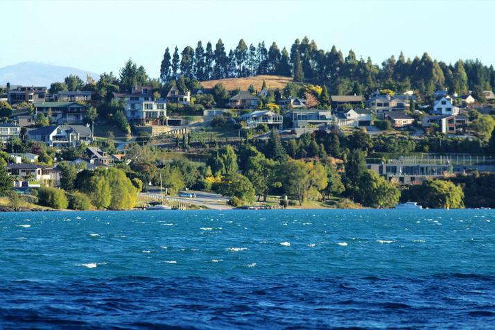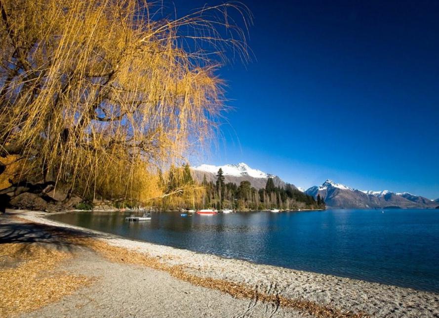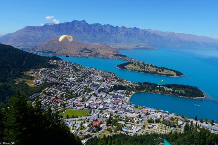 壮丽的南阿尔卑斯山脉上几座覆着白雪的绿棕色山点缀于背景中,从皇后镇到山顶,则是一片绿油油的色彩。这是皇后镇最美的一景,把皇后镇装扮的湖光山色,沉鱼落雁。