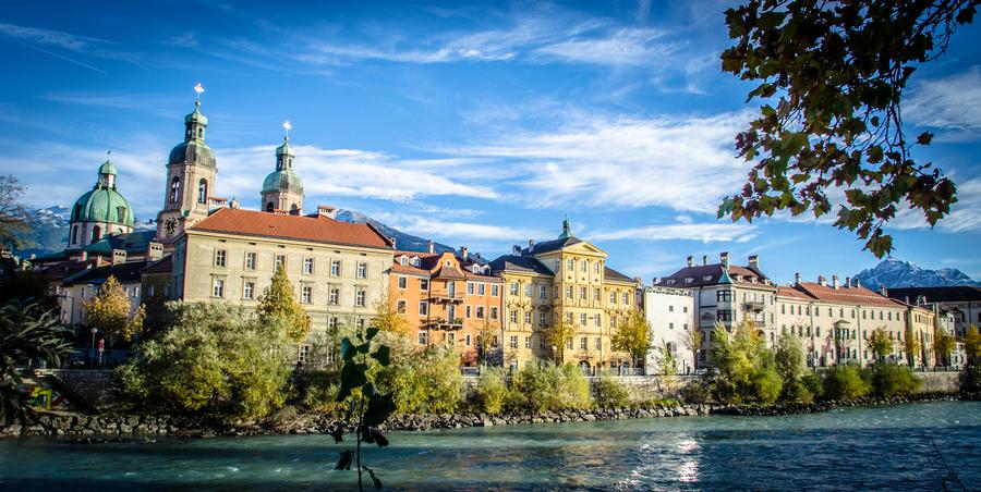 因斯布鲁克坐落在阿尔卑斯山谷之中,小城仍然保持着中世纪城市的容貌,古建筑和阿尔卑斯山雪峰交相辉映。