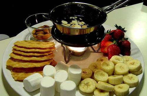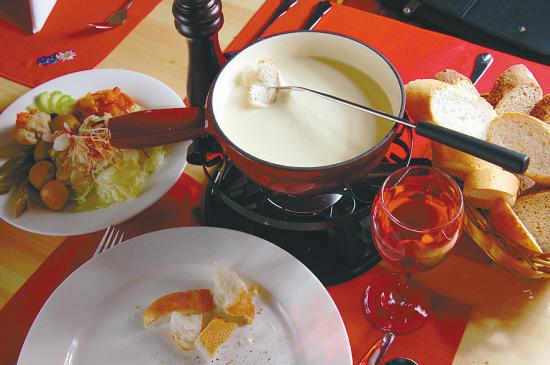 瑞士的奶酪和它的巧克力一样鼎鼎有名。大家围炉在一起,闻着奶酪浓郁的飘香,味觉立马打开,绝对的诱惑。涮着面包、水果和蔬菜,其乐融融的感觉。