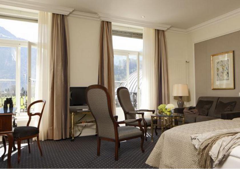 所有客房均拥有独特的设计和装饰,包括古典和现代装饰。优雅的内饰和宽敞的大理石浴室让设计更完美。你可欣赏少女峰(Jungfrau)、因特拉肯(Interlaken)的屋顶或附近的Harder景致。