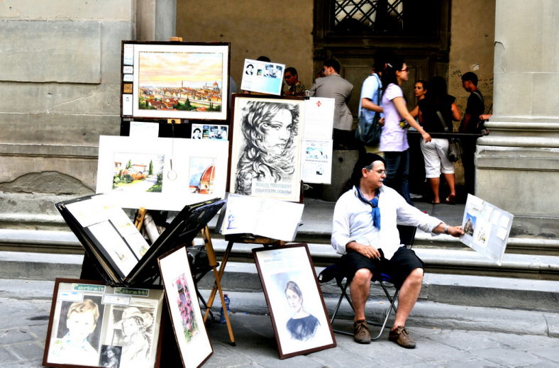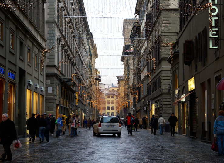 佛罗伦萨是一个颇具绅士格调的城市,充满和谐与优美、庄严与秩序,星罗棋布的村庄和乡间别墅点缀在环抱城市的平缓山坡上。市内街道到处是敞着门的工匠店铺,传统市场保留至今。